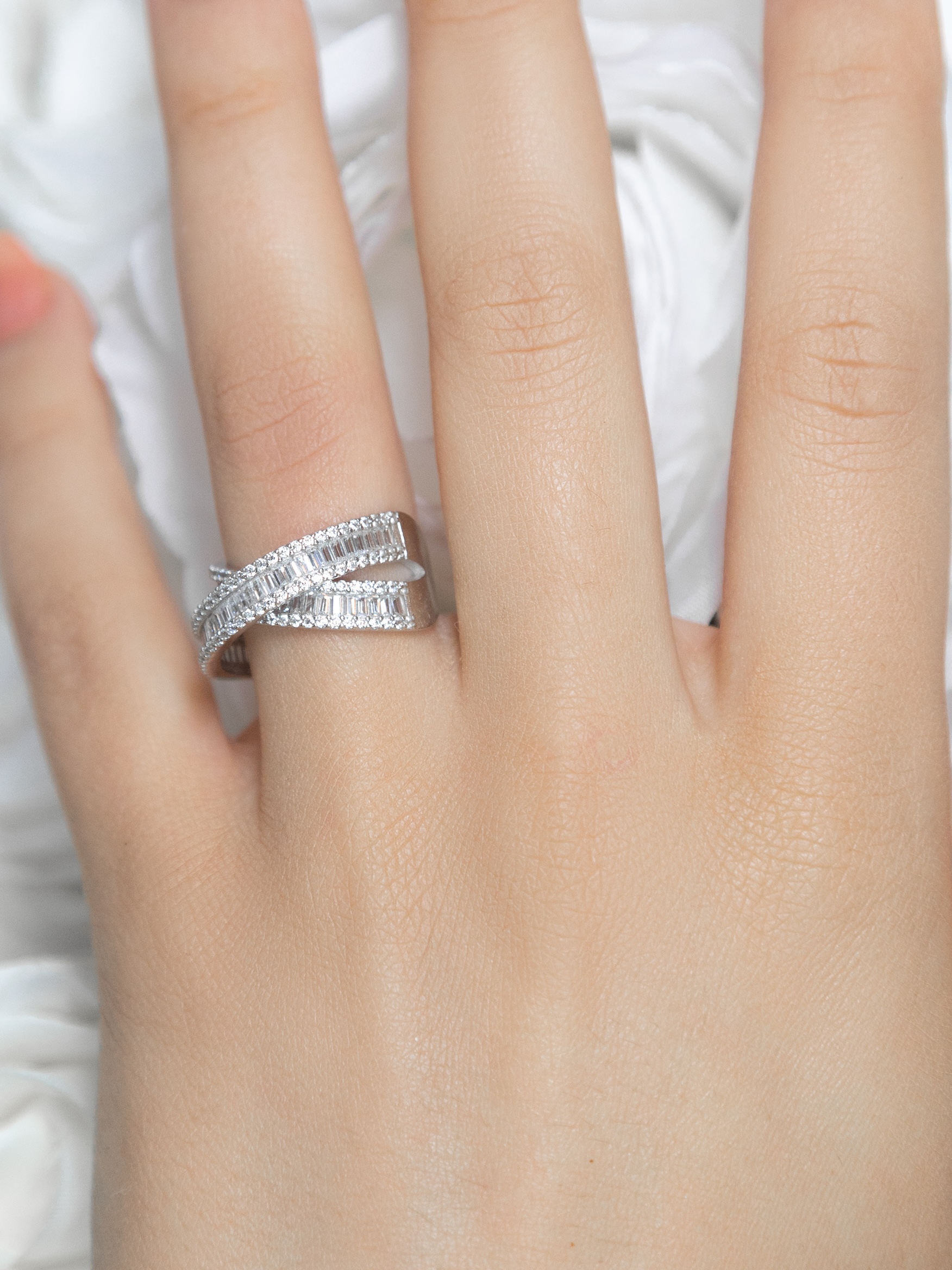 خاتم فضة بعقدة باغيت بتصميم مرصع بشبة الماس ✨