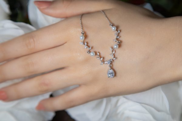 مواصفات المنتج ✅ فضة إسترليني عيار 925✨ مطلي بالذهب الابيض🤍 مصنوع من حجر الزركونيا صنعة تركيب الماسية 💎 طول القلادة 43 cm